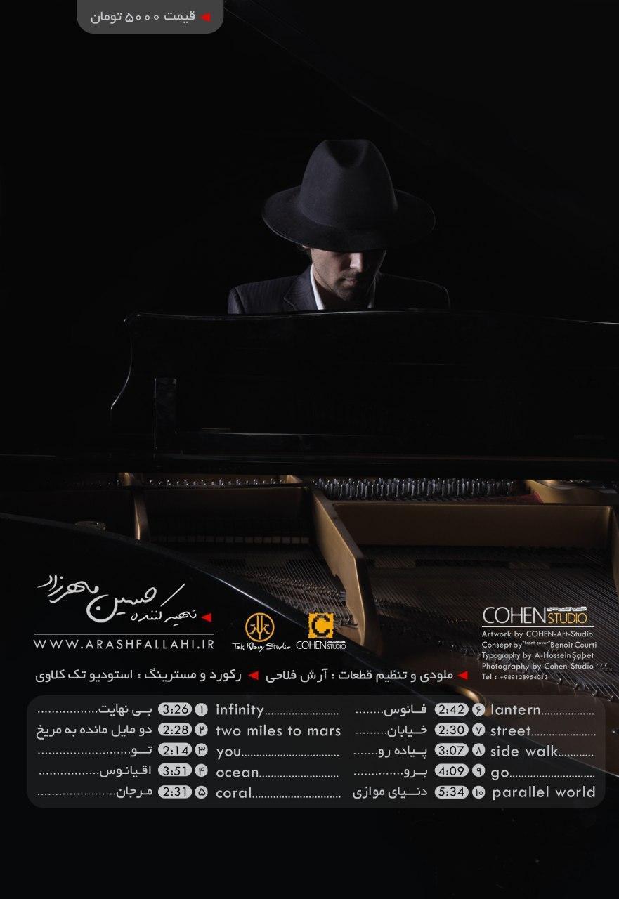 2 Mile to Mars neoclassical album 2 Mile to Mars is a work by Arash Fallahi, an Iranian composer and musician. After several singles, he was used in various media programs, his first album was released in 2017. This album contains 10 songs and takes about 30 minutes and has a relaxing and emotional atmosphere. Its gentle and pleasant pieces immerse the listener and bring a pleasant experience of listening to soul-enhancing music. 2 Mile to Mars is a neoclassical album by Arash Fallahi, an Iranian composer and musician. It was released in 2017 and contains 10 songs with a total runtime of approximately 30 minutes. The album has a relaxing and emotional atmosphere, with gentle and pleasant pieces that immerse the listener and bring a soul-enhancing experience. The following are the names of the pieces in the album: Infinite 2 Miles to Mars You Moj Marjan Me and Obscurity Street Sidewalk Go Parallel World